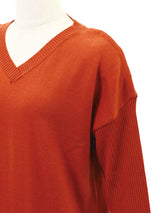 パーツごとに編み方やリブ幅を変えており、コントラストを効かせたデザインニットです。